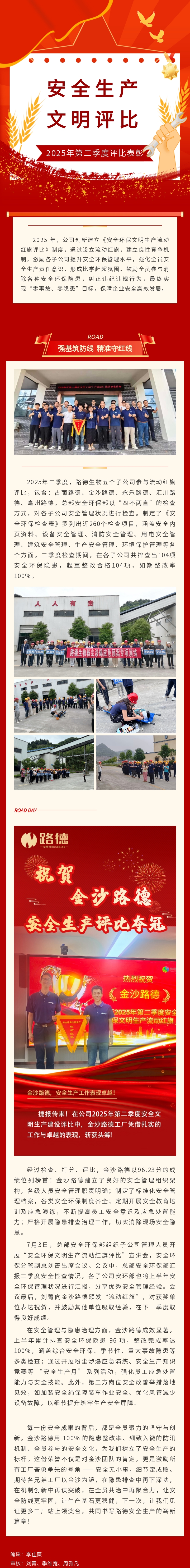 【路德?喜報】牛!金沙路德,榮獲二季度安全環(huán)保文明生產(chǎn)流動紅旗!