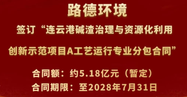 2023-05-18【路德·喜報】熱烈祝賀路德環(huán)境中標連云港堿渣治理運營項目材料采購